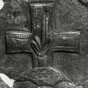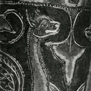 Dekoracja nodusa pióra miedzianego pastorału romańskiego z 2. ćw. XIII wieku z przedstawieniem nieznanego świętego, prawdopodobnie dzieło mistrza G. Alpaisa z Limoges1953