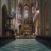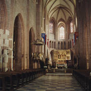 Płyta piaskowcowa z brązową, rytowaną postacią przedstawiająca prawdopodobnie zmarłego w 1494 roku dziekana kapituły poznańskiej Adama Dąbrowskiego w katedrze04.07.1978