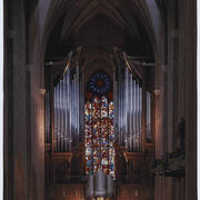 Empora organowa katedry poznańskiej na poczatku XXI wieku (organy zbudował organmistrz Jan Drozdowicz, autorami projektu prospektu organowego są Michał Łożykowski i Krzysztof Kwiatkowski)2001
