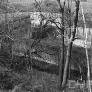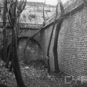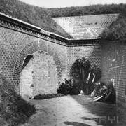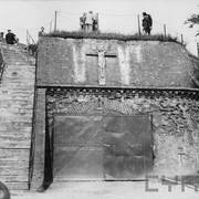 Pozostałości wału ziemnego otaczającego fort Radziwiłł z fragmentami murów głównych prochowni lub bramy wjazdowej na dziedziniec odsłoniętych w czasie przekopywania koryta Warty08.1941