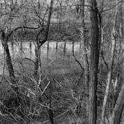 Fragment muru ze strzelnicami przy zachowanym przyczółku zachodniego jazu Katedralnego na Cybinie (Dom Schleuse) w czasie powodzi na Warcie w 2010 r.2010