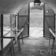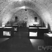Wnętrze remizy artyleryjskiej fortu VII Colomb z tablicami upamiętniającymi zamordowane ofiary obozu (pomieszczenie użytkowane przez Muzeum Martyrologii Wielkopolan)1967