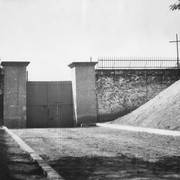Brama Rycerska (Ritter Thor) od strony zewnętrznej, przed bramą pięć murowanych filarów (trzy wolnostojące) z otwartymi, żelaznymi, kratowymi wrotami1903