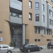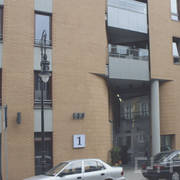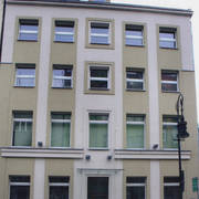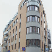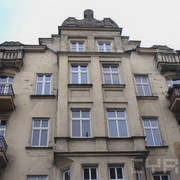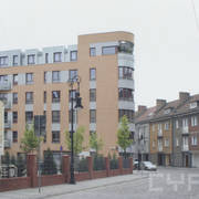 Nowoczesny budynek mieszkalny przy ul. Tylne Chwaliszewo 23, widok od wschodu, z lewej fragment kamienicy będącej pozostałością dawnego osiedla robotniczego przy ul. Czartoria29.04.2011