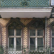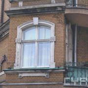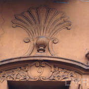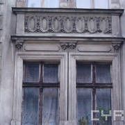 Detale architektoniczne późnobarokowej elewacji dawnego domu Kongregacji Filipinów, od 1848 roku sierociniec prowadzony przez siostry miłosierdzia św. Wincentego á Paulo (obecnie Katedralna Ogólnokształcąca Szkoła Muzyczna)