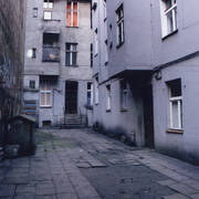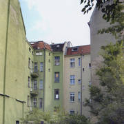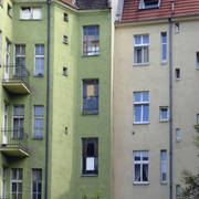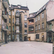 Nowoczesny budynek mieszkalny przy ul. Tylne Chwaliszewo 23, z lewej kamienica będąca pozostałością dawnego osiedla robotniczego przy ul. Czartoria27.05.2011