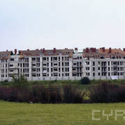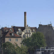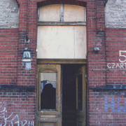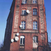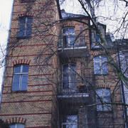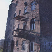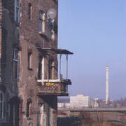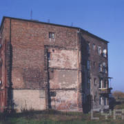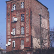Budynek przy ul. Czartoria 5, jedyny ocalały z dawnego kompleksu domów robotniczych, w oddali most Bolesława Chrobrego na Warcie i elektrownia Garbary2008