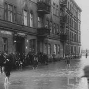 Domy przy ul. Ostrówek 8 i 9 udekorowane na procesję Bożego Ciała, z prawej osiemnastowieczna kamieniczka rozebrana w czasie II wojny światowej25.06.1930