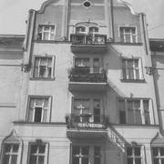 Fragment fasady dawnej szkoły elementarnej przy ul. Bydgoskiej (obecnie Poznańska Ogólnokształcąca Szkoła Muzyczna nr 2 im. Tadeusza Szeligowskiego) około 1953 roku