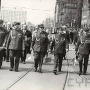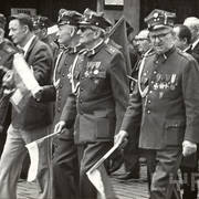 Weterani powstania wielkopolskiego w czasie pochodu pierwszomajowego na ul. Czerwonej Armii (obecnie ul. Święty Marcin), w środku w ciemnych okularach Maksymilian Szymkowiak01.05.1976