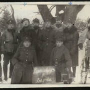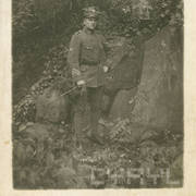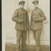 Maksymilian Szymkowiak ze swoim najlepszym przyjacielem M. Pawliczakiem w wojsku niemieckim, pocztówka wysłana przez Maksymiliana do brata Leona1915–1918