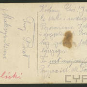 Odwrocie pocztówki, którą Maksymilian Szymkowiak wysłał w czasie I wojny światowej do rodziny ze szpitala rezerwowego (Reservelazarett) w Bad Kreuznach24.07.1916