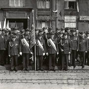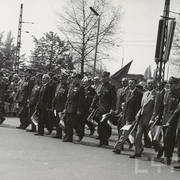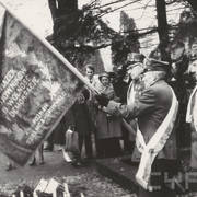 Weterani powstania wielkopolskiego na pochodzie pierwszomajowym przed kinem Bałtyk, w pierwszym rzędzie pierwszy z prawej Maksymilian Szymkowiak01.05.1976
