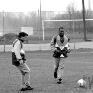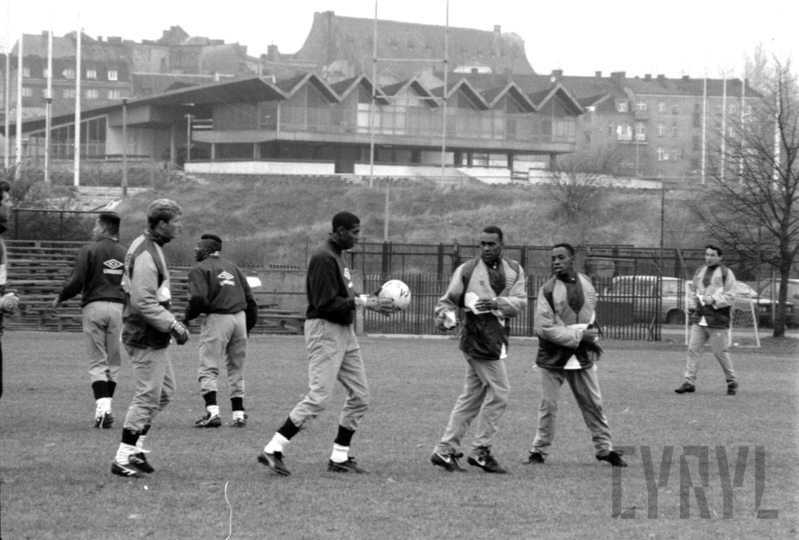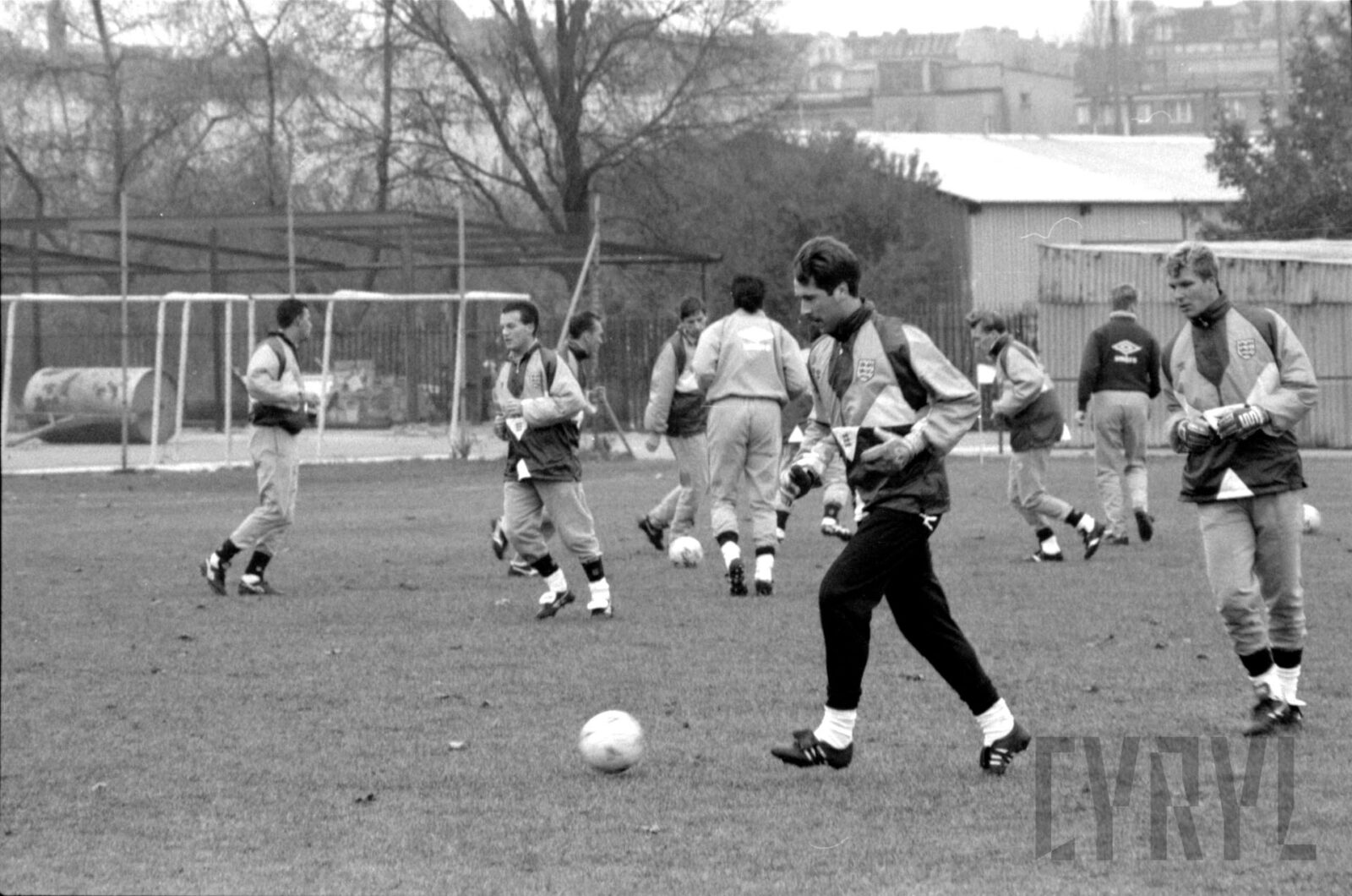 Trening reprezentacji Anglii na boisku AWF (?) przy Drodze Dębińskiej przed meczem Polska – Anglia (1:1) rozegranym w ramach eliminacji do Mistrzostw Europy 1992, w tle widoczna m.in. jedna z trybun stadionu E. Szyca11.1991