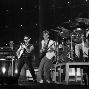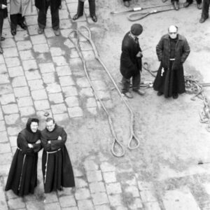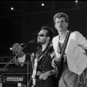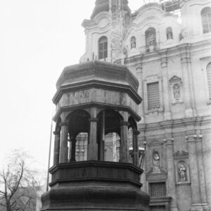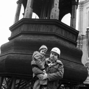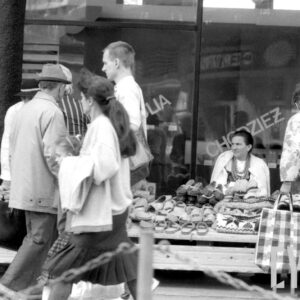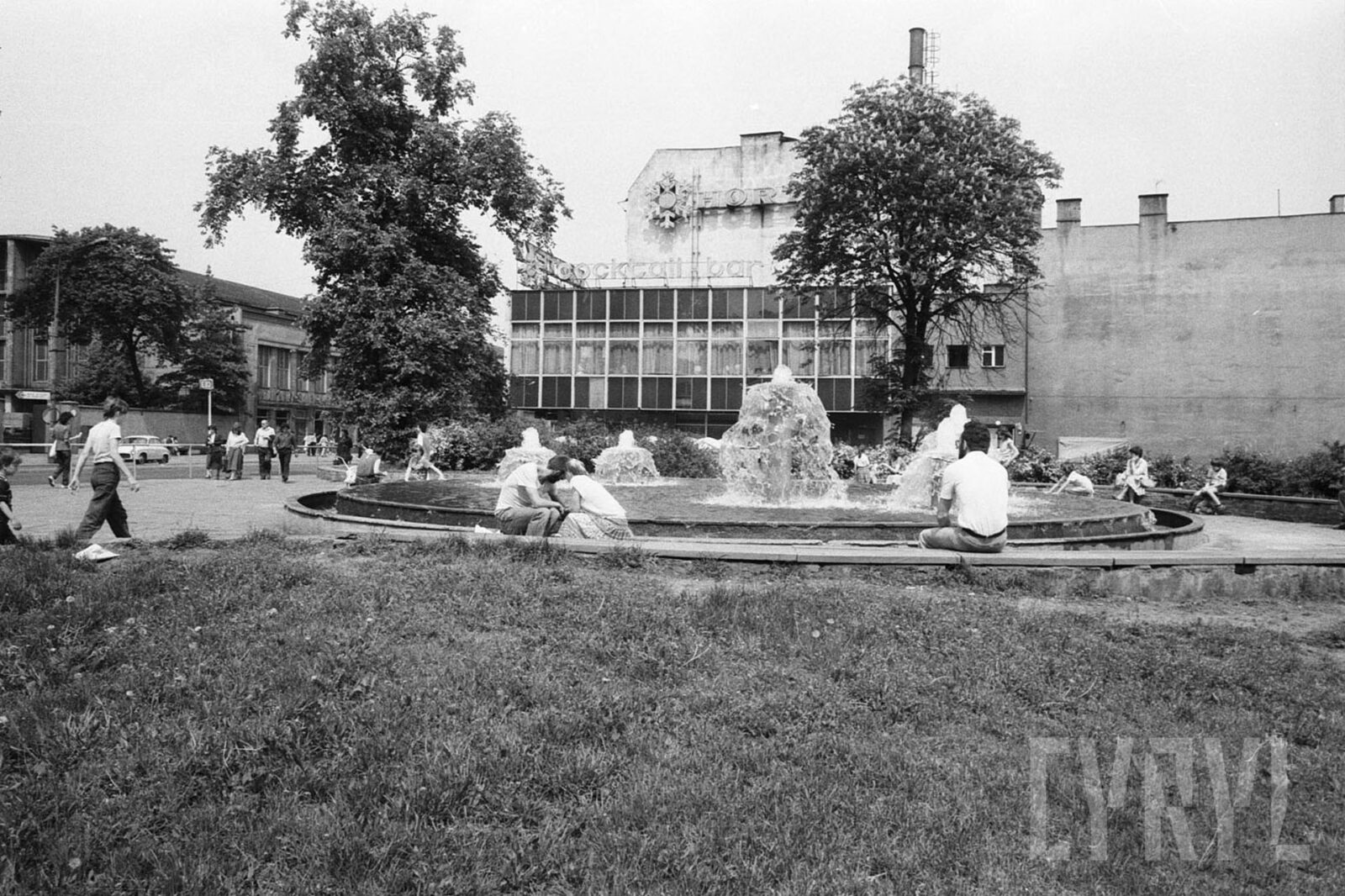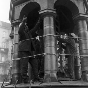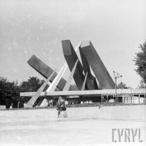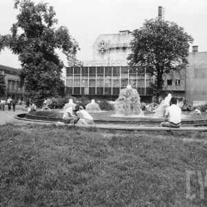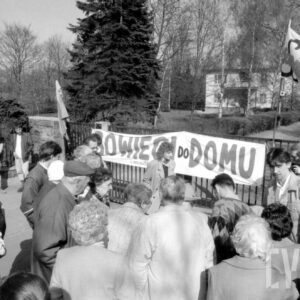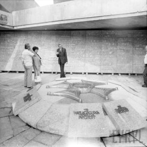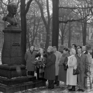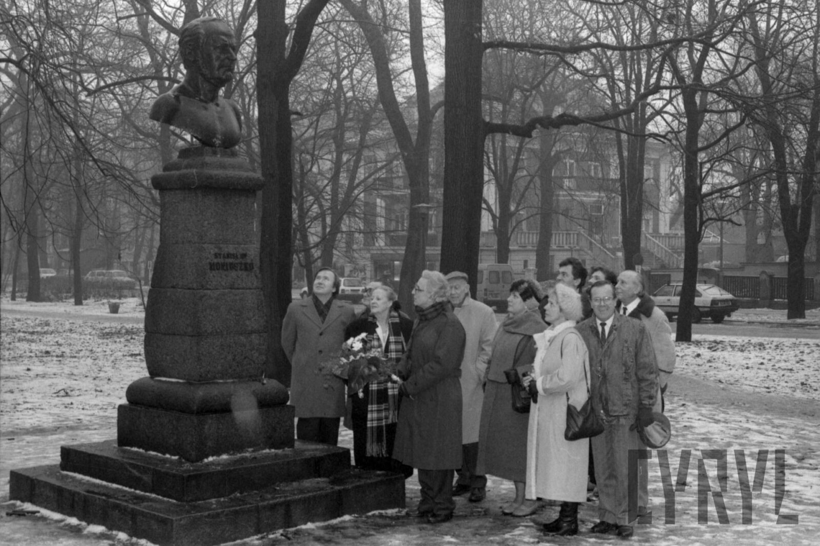 Składanie kwiatów pod pomnikiem Stanisława Moniuszki w parku jego imienia, w tle willa nr 4 przy ul. Chopina, ówczesny konsulat Stanów Zjednoczonych1980–1989