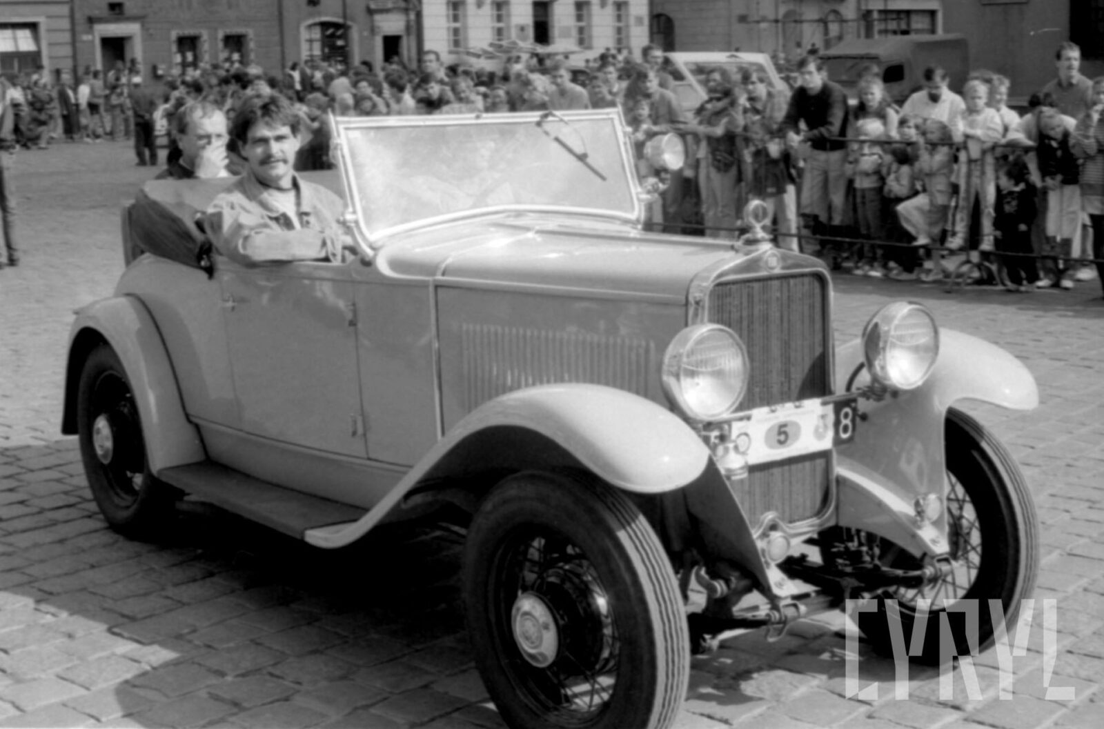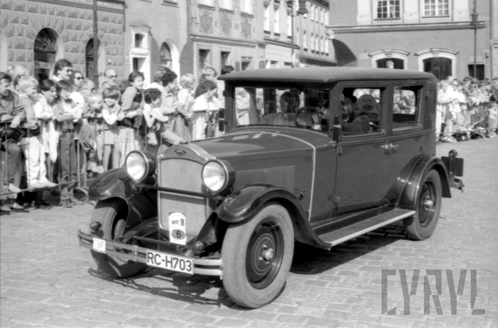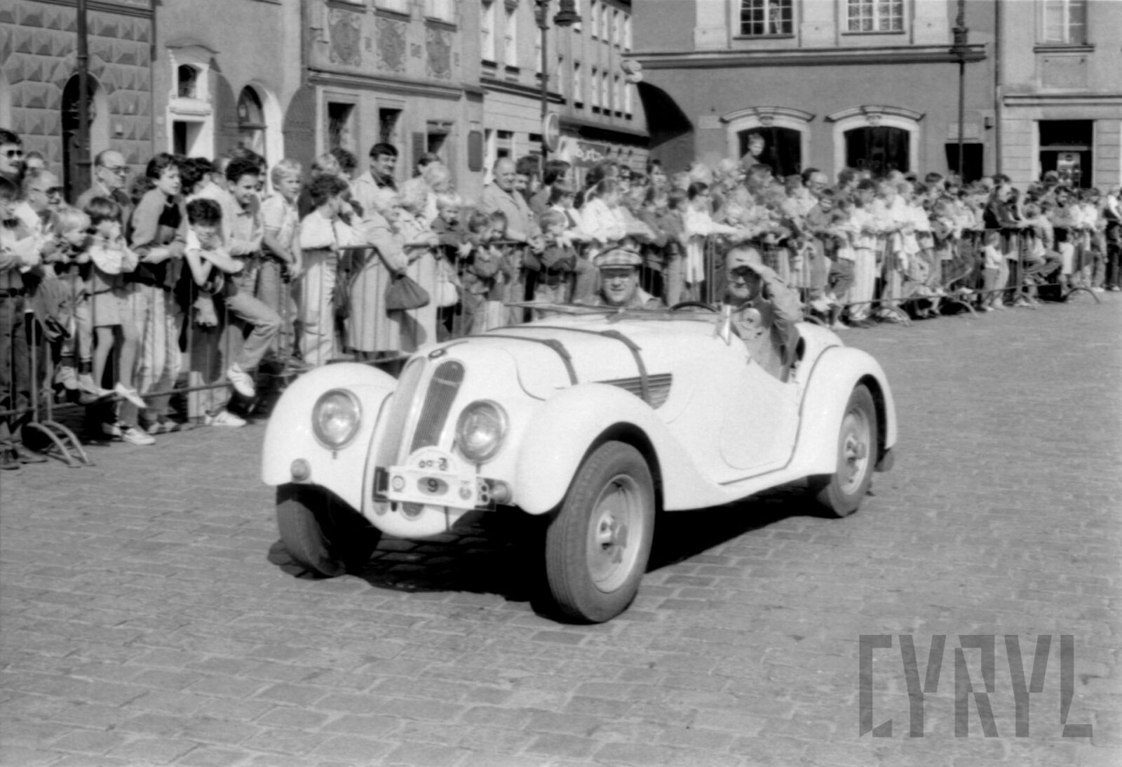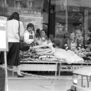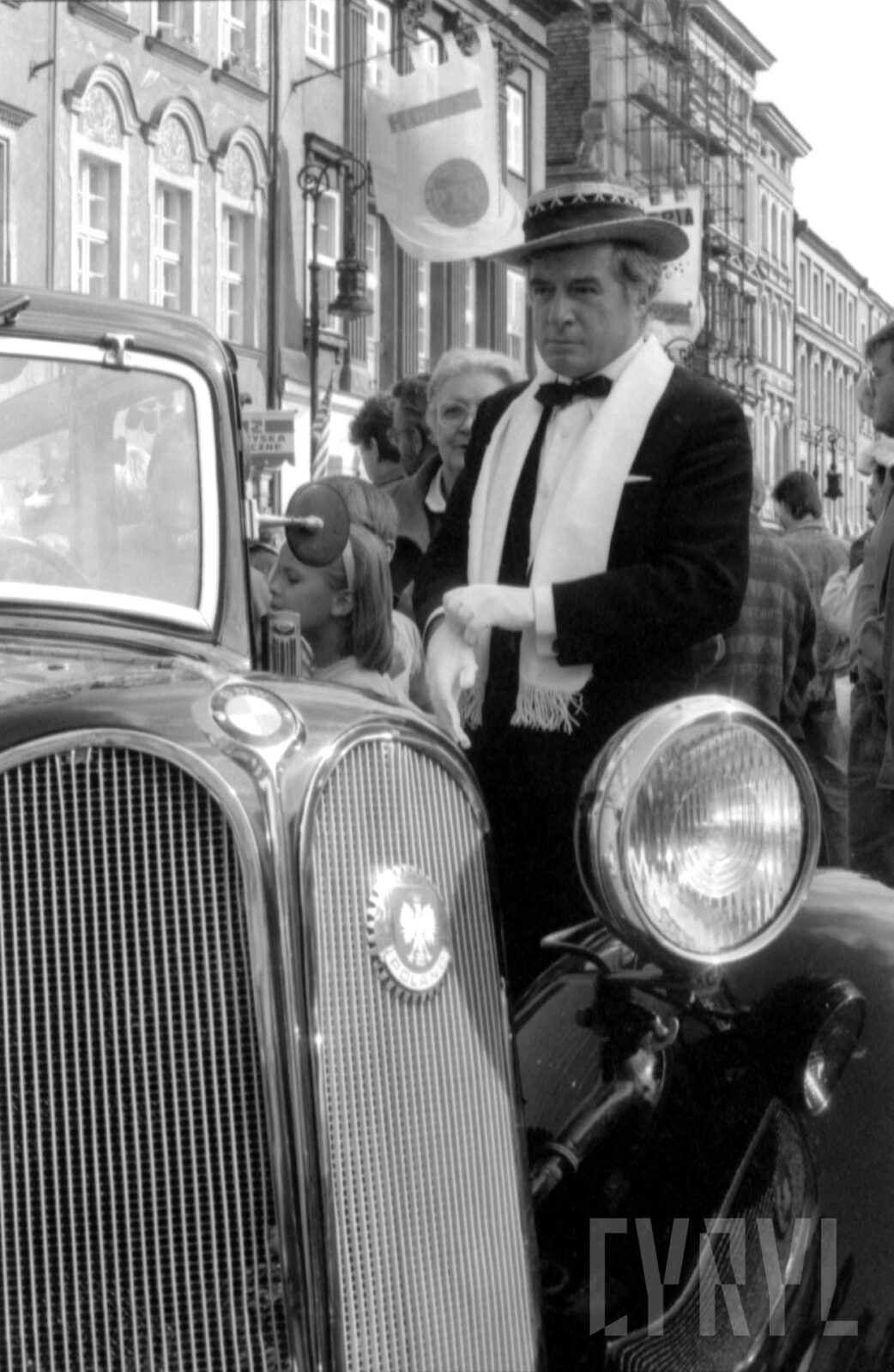Przywitanie Margaret Thatcher, byłej premier Wielkiej Brytanii, na parkingu przed Urzędem Miasta Poznania (dzisiaj Wolny Dziedziniec) przez prezydenta Wojciecha Szczęsnego Kaczmarka (trzeci od prawej)03.07.1996
