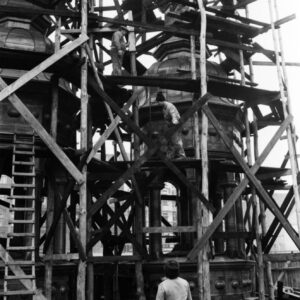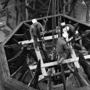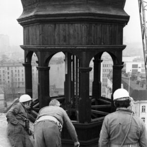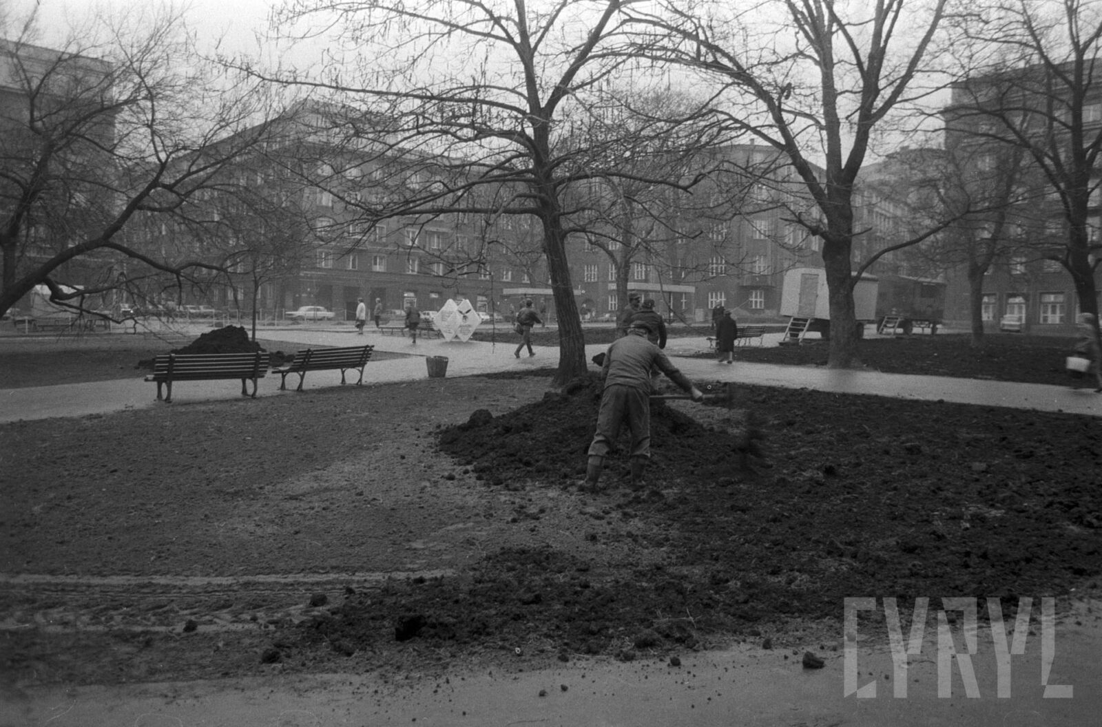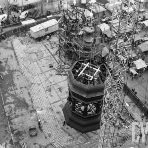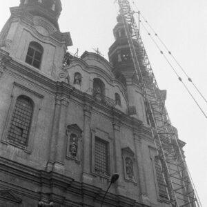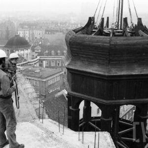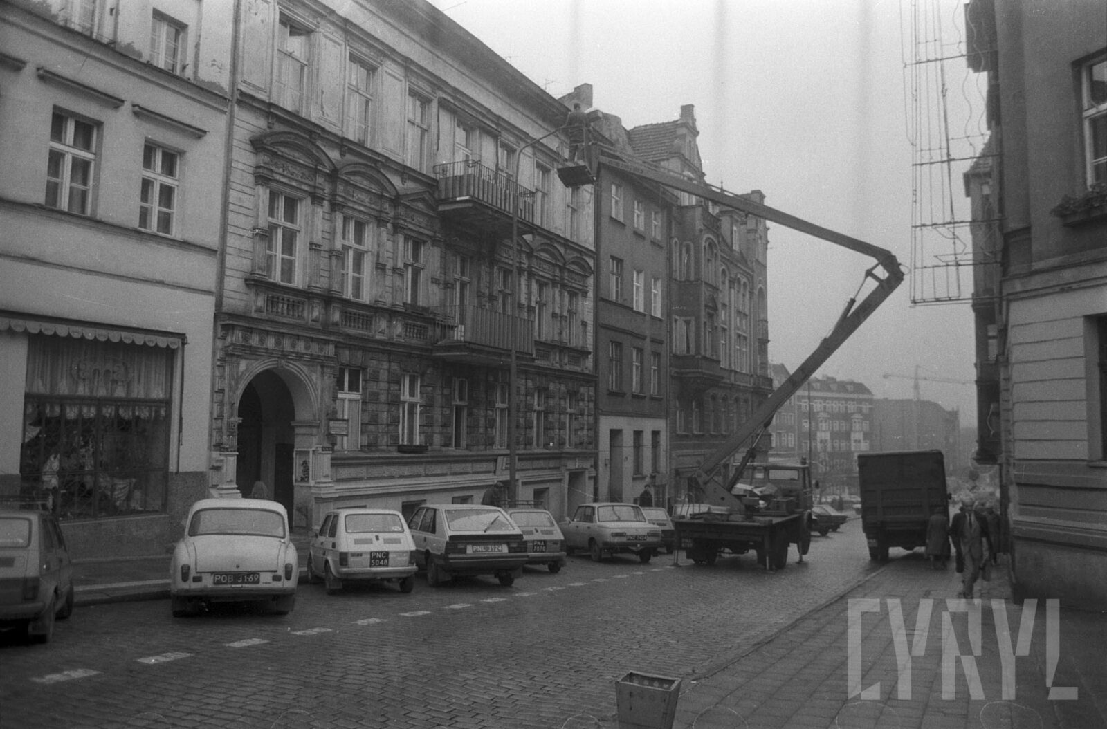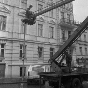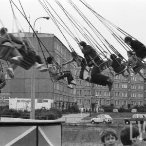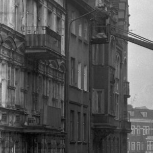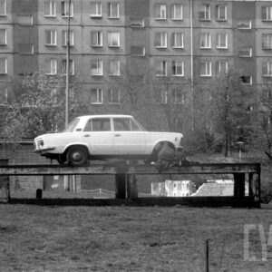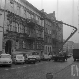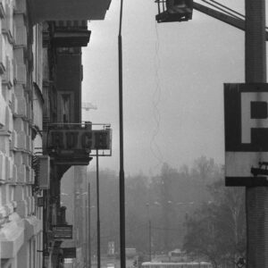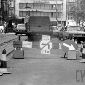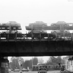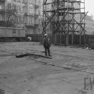 Budowa Poznańskiego Szybkiego Tramwaju (PST, Pestka) w okolicy dzisiejszego wiaduktu przy przystanku Lechicka/Poznań–Plaza, w głębi os. Zwycięstwa1980–1989