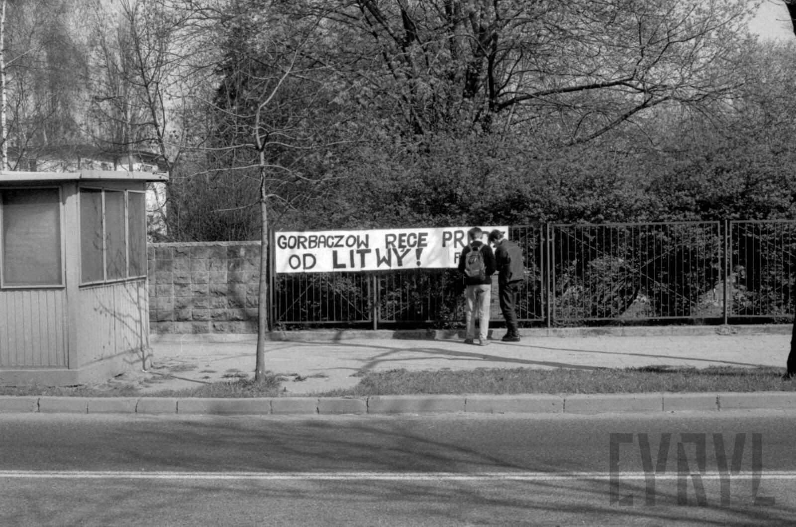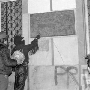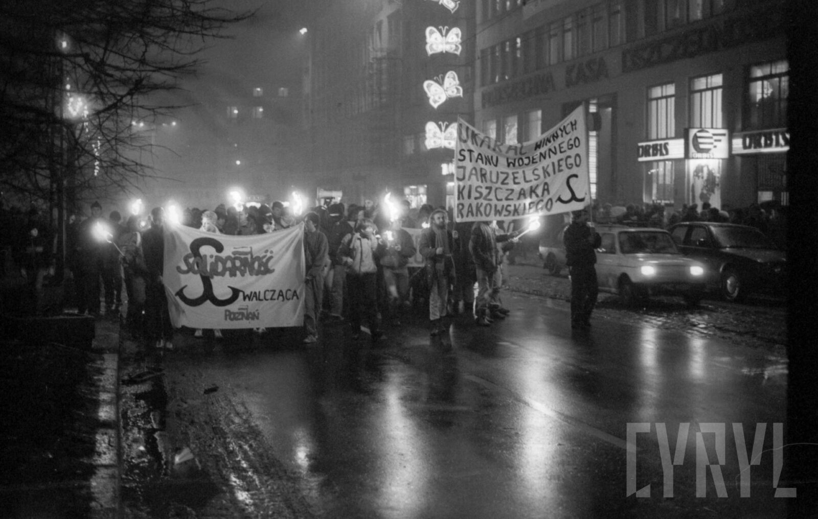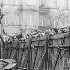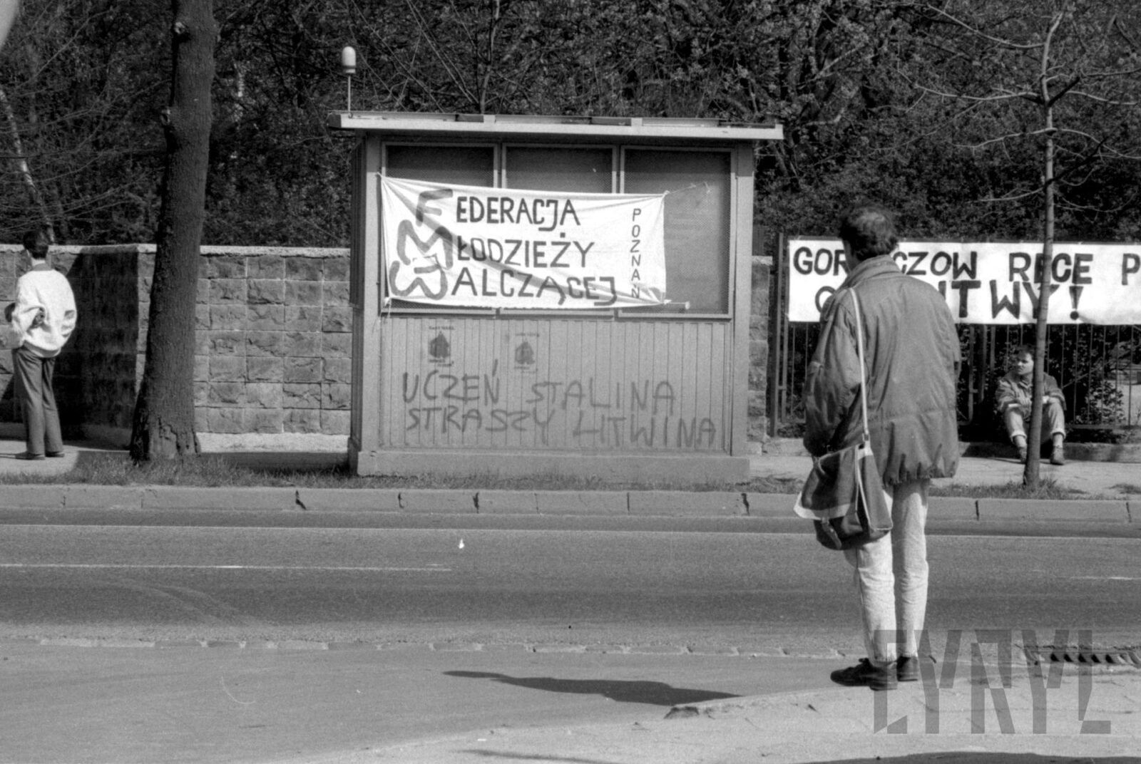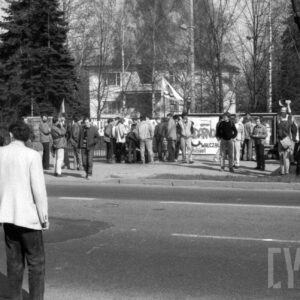 Protest Solidarności Walczącej przed gmachem KW PZPR (dzisiaj Collegium Martineum) wzywający do odsunięcia od władzy generała Wojciecha Jaruzelskiego1989–1990