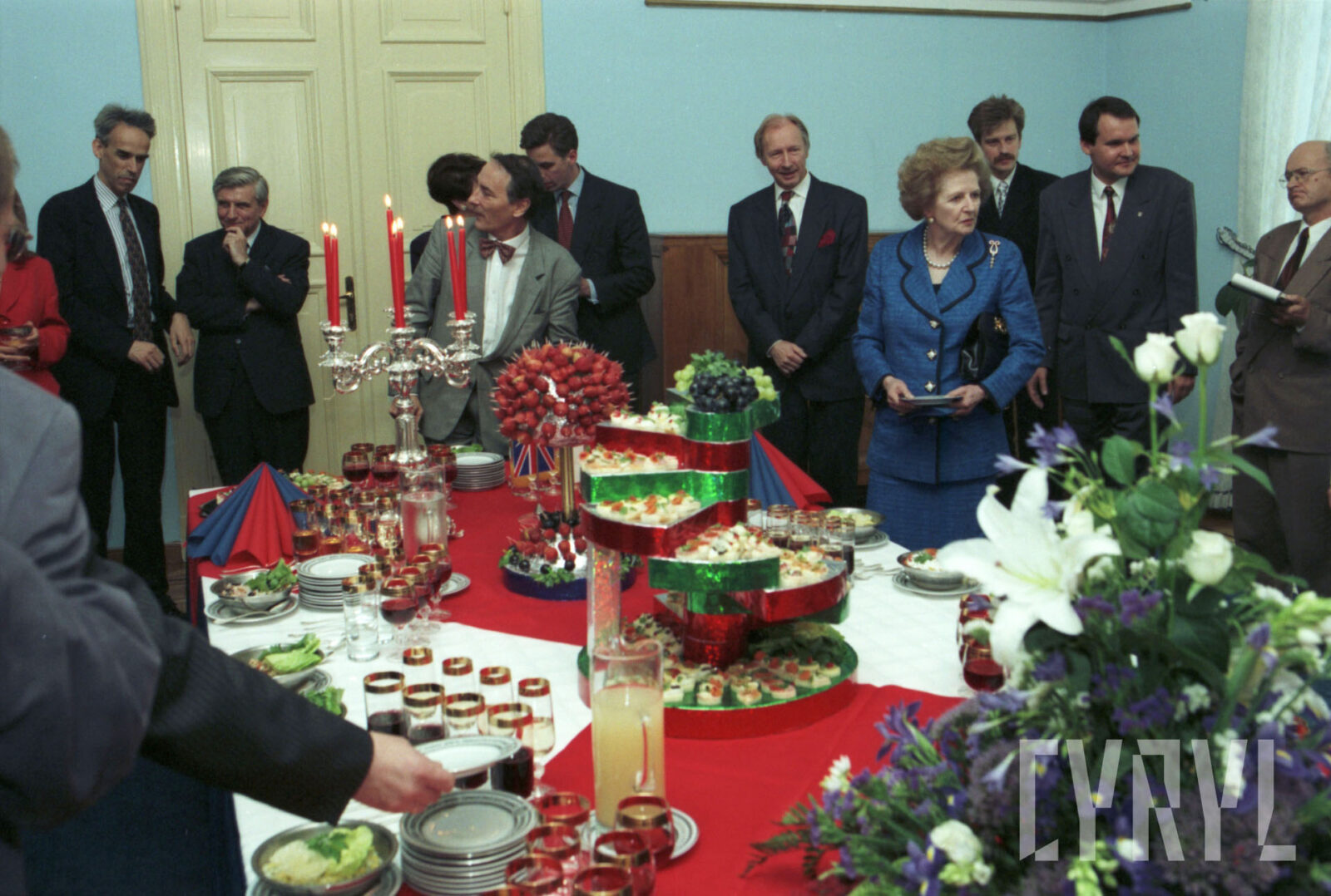 Bankiet z okazji przyznania Margaret Thatcher, byłej premier Wielkiej Brytanii, tytułu Honorowego Obywatela Miasta Poznania w Sali Białej Urzędu Miasta Poznania03.07.1996