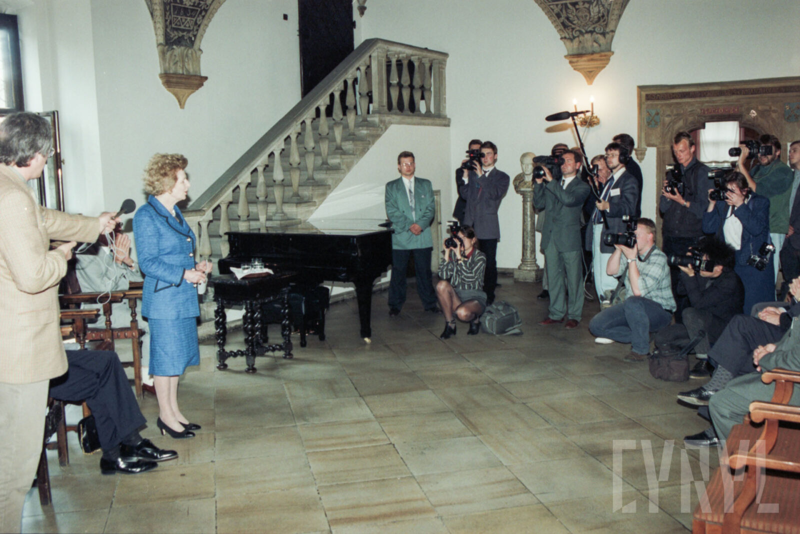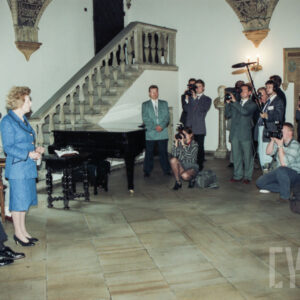 Wizyta Margaret Thatcher, byłej premier Wielkiej Brytanii, w Sali Renesansowej ratusza, gdzie dokonała uroczystego otwarcia poznańskiej filii Brytyjskiej Izby Handlowej w Polsce03.07.1996