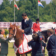 Ceremonia wręczenia nagród zwycięzcom Polish Open 1999 w grze pojedynczej na kortach tenisowych KS Olimpia (dzisiaj Park Tenisowy Olimpia)