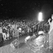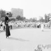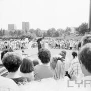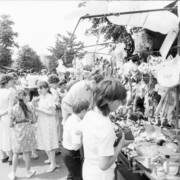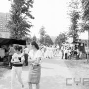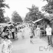 Kiermasz w czasie Dni Winograd w parku Gagarina, po lewej w głębi bloki na os. Wielkiego Października (dzisiaj os. Pod Lipami)