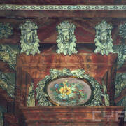 Gzyms i zwieńczenie ołtarza św. Krzyża, powyżej widoczna dekoracja obramienia otworu okiennego oraz fragment dekoracji sklepienia