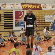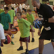 Marcin Gortat Camp 2009, warsztaty koszykarskie dla dzieci w hali Akademii Wychowania Fizycznego