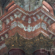 Dekoracja fryzu ponad głowicami kolumn oraz konsole gzymsu z motywem główek anielskich w kolegiacie farnej
