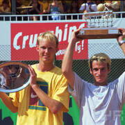 Finaliści Polish Open 1999 w grze pojedynczej, Fredrik Jonsson (II miejsce) i Galo Blanco (I miejsce), na kortach tenisowych KS Olimpia (dzisiaj Park Tenisowy Olimpia)