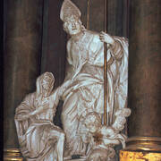 Rzeźbiarskie przedstawienie sceny Wskrzeszenia Piotrowina przez św. Stanisława Biskupa w kolegiacie farnej