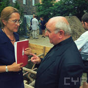 Profesor Hanna Kóčka-Krenz, kierownik badań archeologicznych i ks. Stefan Schudy, asystent kościelny Akcji Katolickiej przy stanowisku archeologicznym na Ostrowie Tumskim przy kościele Najświętszej Marii Panny