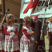 Bamberki w tradycyjnych, odświętnych strojach i Włodzimierz Łęcki na Święcie Bamberskim na Starym Rynku