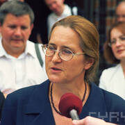 Konferencja prasowa prof. Hanny Kóčki-Krenz, kierownika badań archeologicznych na Ostrowie Tumskim przy kościele Najświętszej Marii Panny