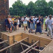 Profesor Hanna Kóčka-Krenz oprowadza dziennikaczy po stanowisku archeologicznym na Ostrowie Tumskim przy kościele Najświętszej Marii Panny