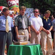 Zygmunt Solorz-Żak (trzeci z lewej) i Wojciech Fibak (czwarty z lewej) na Polish Open 1999, korty tenisowe KS Olimpia (dzisiaj Park Tenisowy Olimpia)