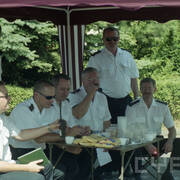 Przeszukiwanie rzeki przez funkcjonariuszy Milicji Obywatelskiej