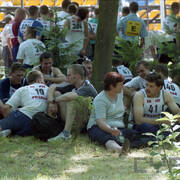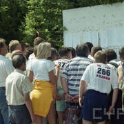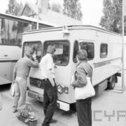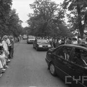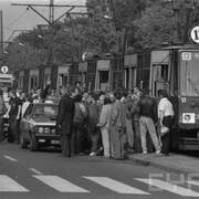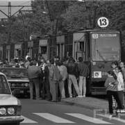 Kibice w drodze na mecz Lech Poznań – Widzew Łódź (0:0) rozegrany na stadionie przy ul. Bułgarskiej w ramach 27. kolejki rozgrywek I ligi piłki nożnej w sezonie 1989–90