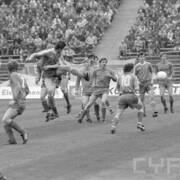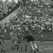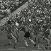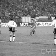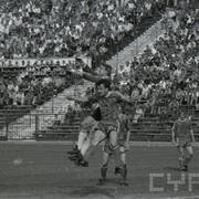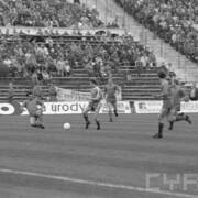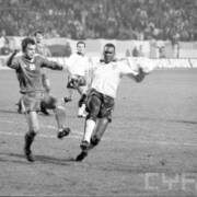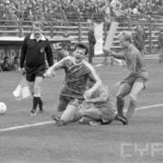 Mecz Lech Poznań – Górnik Zabrze (2:0) na stadionie przy ul. Bułgarskiej, na pierwszym planie faulowany zawodnik Lecha Mirosław Trzeciak