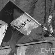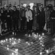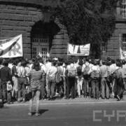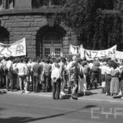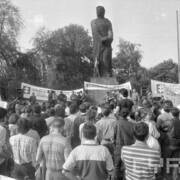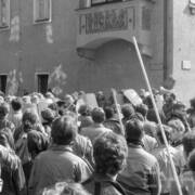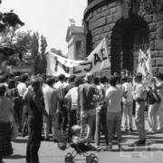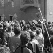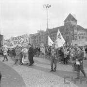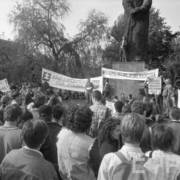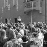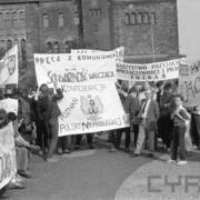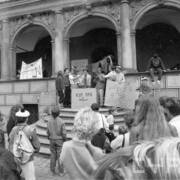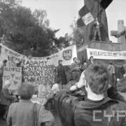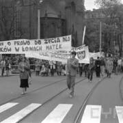 Manifestacja antyaborcyjna na pl. Mickiewicza pod koniec lat 80. XX wieku