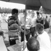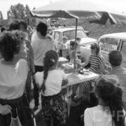 Loteria fantowa w czasie wiecu wyborczego kandydata do Sejmu Wacława Rogalewicza na stadionie WKS Grunwald Poznań