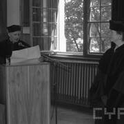 Przmówienie rektora UAM prof. Jerzego Fedorowicza na uroczystości wręczenia doktoratu honoris causa Uniwersytetu im. Adama Mickiewicza prezydent Irlandii Mary Robinson, Aula Lubrańskiego