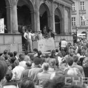 Happening "Kup Pan socjalizm" przed ratuszem na Starym Rynku