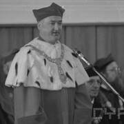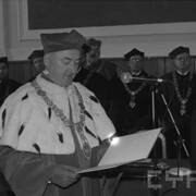 Obchody siedemdziesięciolecia Uniwersytetu Poznańskiego, uroczystościom przewodzili rektorzy poznańskich uczelni, a gościem honorowym był minister edukacji narodowej prof. Jacek Fisiak (w środku)