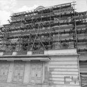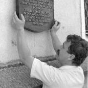 Wieszanie tablicy pamiątkowej na elewacji dawnej Nowej Synagogi na narożniku ulic Wronieckiej i Stawnej