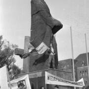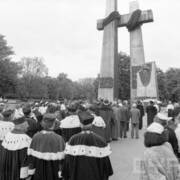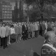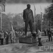 Składanie kwiatów pod pomnikiem Poznańskiego Czerwca 1956 w czasie obchodów siedemdziesięciolecia Uniwersytetu Poznańskiego