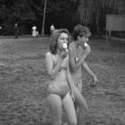 Plażowiczki nad Rusałką w dniu Narodowego Święta Odrodzenia Polski