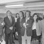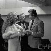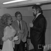 Violetta Villas, prezydent Poznania Andrzej Wituski i Władysław Komar na spotkaniu po zakończeniu imprezy noworocznej "Poznań Dzieciom" w Hali Widowiskowo-Sportowej Arena