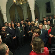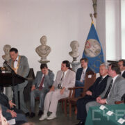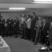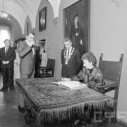 Spotkanie władz Poznania z delegacją samorządowców z Niemieckiej Republiki Demokratycznej (?) w ratuszu, drugi od prawej stoi prezydent Andrzej Wituski