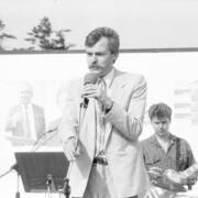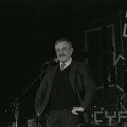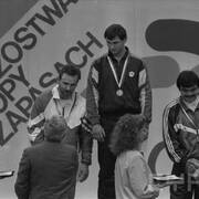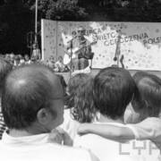 Marek Król, kandydat do Sejmu z ramienia PZPR, w czasie wiecu wyborczego na stadionie WKS Grunwald Poznań